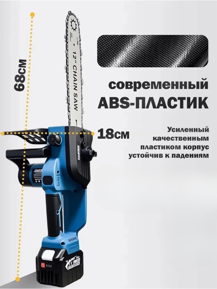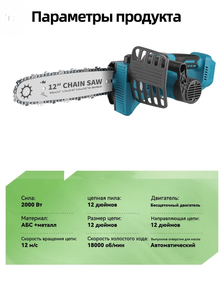 - Комплектация - Пила цепная; шина 12 дюймов; цепь 45 звеньев; 1 АКБ 21В 4Ач; зарядная станция; инструкция; кейс